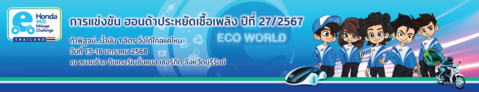 แม้โลกจะเผชิญปัญหาด้านสิ่งแวดล้อม แต่ภาพในสนามแข่งขันอีโครัน ทุกคนจะได้พบกับบรรยากาศความน่าตื่นเต้นในการแข่งขันที่เกิดจากความร่วมมือ ร่วมใจของคนในทีม แม้ว่าเป้าหมายสำคัญอันดับแรกของผู้เข้าแข่งขัน คือการประดิษฐ์ยานยนต์ประหยัดน้ำมันเชื้อเพลิง แต่ทีมแข่งทุกคนล้วนมีความสุขกับการท้าทายครั้งนี้ ทุกปีจะมีผู้กล้าเข้าร่วมการแข่งขันนี้เป็นจำนวนมาก คุณ...ก็สามารถเป็นหนึ่งในผู้กล้าเหล่านี้ได้ ลองมาเพลิดเพลินกับการแข่งขัน ร่วมกับพวกเรา ด้วยคติสำคัญที่ว่า